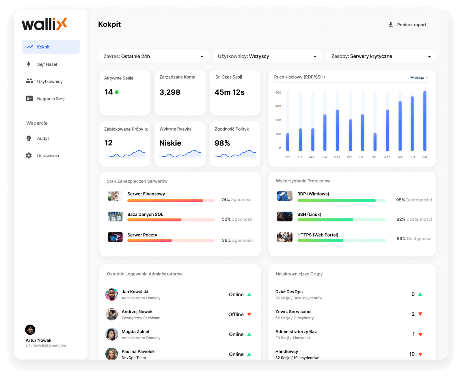 Zamiast polegać na zaufaniu i ręcznych procesach, wdróż mechanizmy, które automatycznie wymuszają bezpieczeństwo. Zobacz, co zyskasz dzięki profesjonalnemu systemowi PAM.